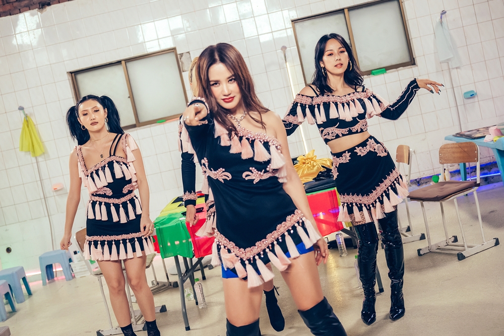 환불 원정대는 무대에 서기 앞서 신곡 '돈터치 미'에 대해서 "신박 기획의 첫 번째 프로젝트 곡으로 신나고 강렬한 비트의 댄스곡"이라고 소개했습니다.