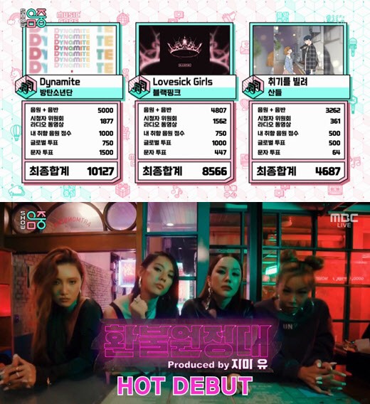 17일 방송된 쇼! 음악중심의 1위는 '블랙핑크'와 '산들'을 제치고 '방탄소년단'의 '다이너마이트'가 이변없이 많은 분들의 예상대로 1위 트로피를 가져갔습니다. 이날 방탄소년단은 출연하지 않았지만 음원점수와 투표 점수를 통해 1위를 하며 빌보드 핫 100 1위의 저력을 보여줬습니다.